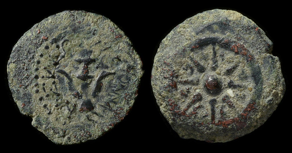 Word Study: A little technical details on the reproduction I gave. I had to give you reproductions because the genuine “widow’s mite” – which can still be bought online – can cost anywhere from 40 to 400$ apiece because of collector demand! The “widow’s mite” I gave you has an anchor on one side, and the points of a star on the other. The actual name of these coins is lepta(singular = lepton). Lepta were the lowest denomination of coin that circulated in Jerusalem when Jesus walked the earth. Two lepta [KJV “mites”] were equivalent to one quadrans [KJV “farthing] (Greek κοδράντης kodrántēs, [pronounced kod-ran’-tace]), the smallest Roman coin. The quadrans was worth 3/8 of a cent. The widow gave less than a penny to the collection at the Temple.